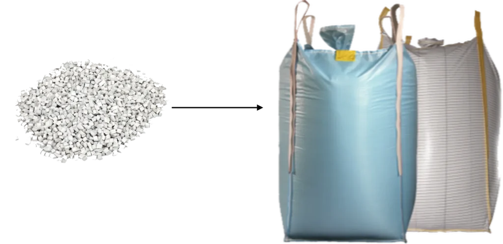 It is amazing how these small polymer pellets are transformed into a bulk bag. We are fortunate to be partnered with a manufacturer who has fully integrated production in their factories. This means that the polymer arrives in pellets and then extruded to meet the requirements of the end product. The tapes are then woven